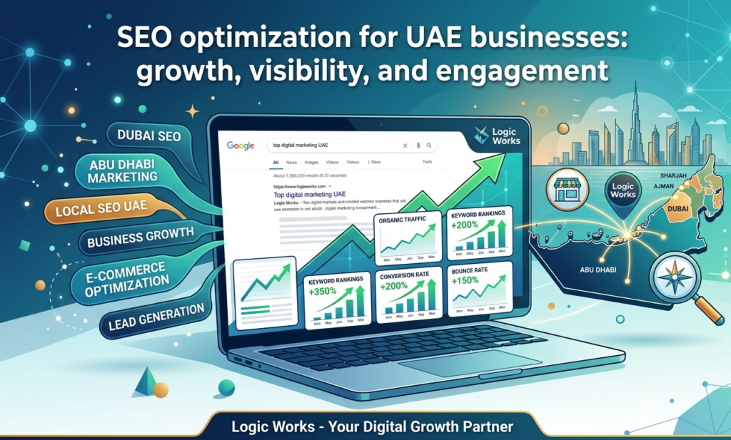 SEO goes beyond keyword rankings. Many UAE businesses lose traffic because of poor optimization, outdated content, or weak technical SEO. Logic Works implements: